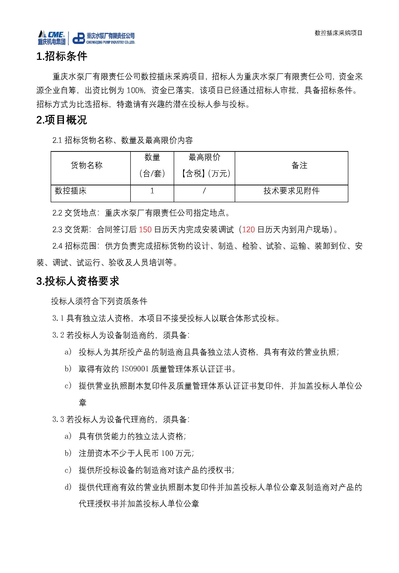 數(shù)控插床采購招標(biāo)公告