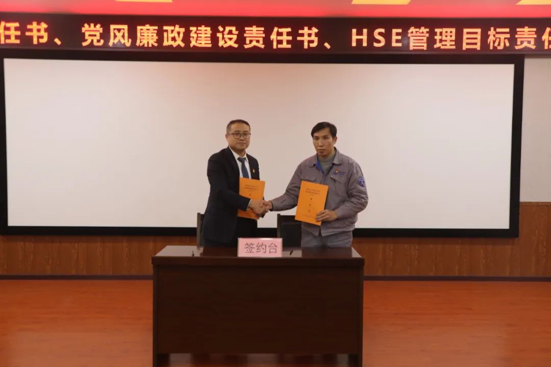 會上,公司主要領導與分管領導、分管領導與中層干部簽訂了《2023年目標責任書》《2023年黨風廉政建設責任書》和《HSE管理目標責任書》。此次會議的召開,為公司推進2023年工作良好開局、落實新修訂的“十四五”規劃凝聚了共識,指明了方向。(黨群紀檢審計部)