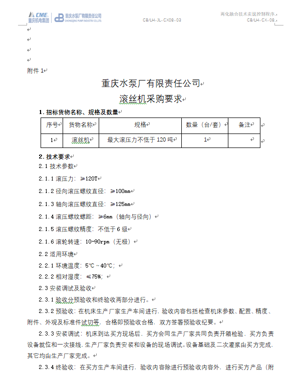 大型往復(fù)隔膜泵研發(fā)測試能力建設(shè)項目 滾絲機(jī)招標(biāo)公告